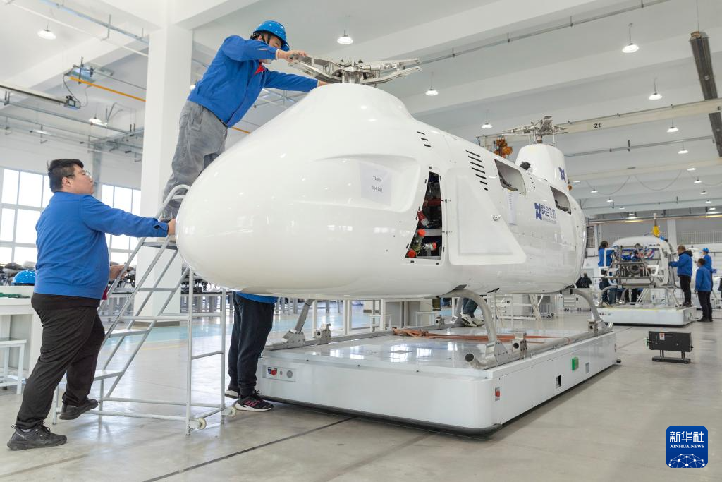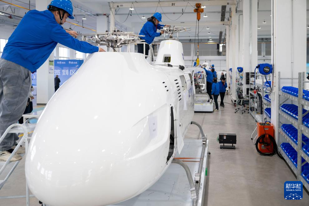 10月30日,在哈尔滨市平房区的哈尔滨联合飞机科技有限公司生产厂区,工作人员装配T1400无人直升机。