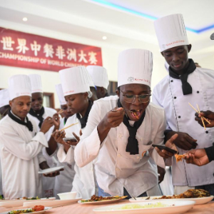 10月30日,在肯尼亚首都内罗毕举行的2025世界中餐非洲大赛上,参赛选手品鉴出炉的菜品。