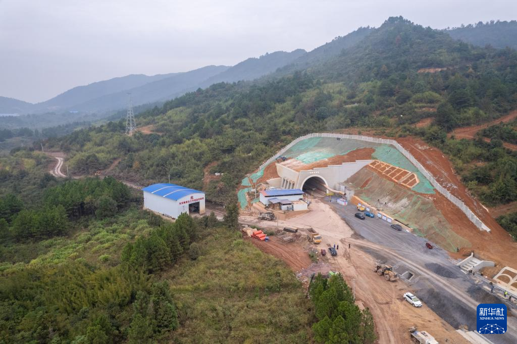 这是11月1日在湖南省永州市东安县拍摄的邵永高铁东安隧道出口。