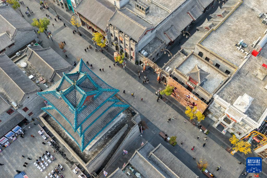 游客在钟楼街行走(无人机照片,10月29日摄)。