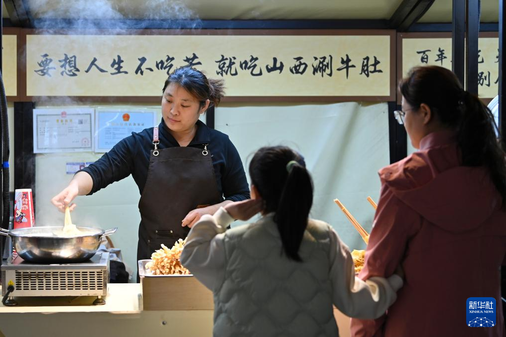 钟楼街内的一家商户在制作美食(11月1日摄)。