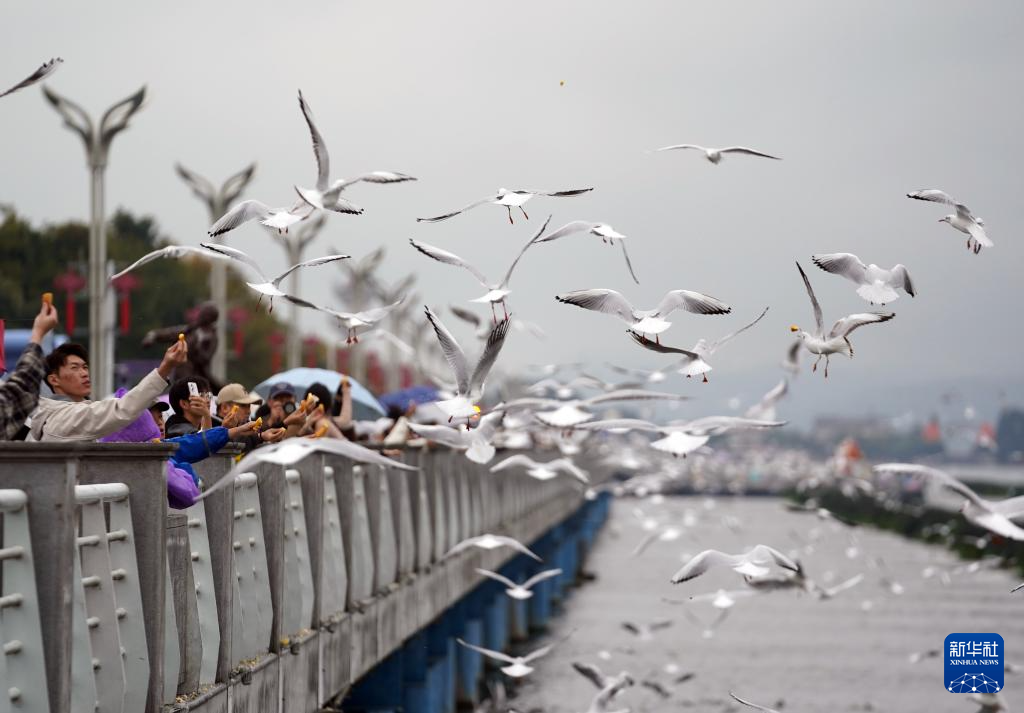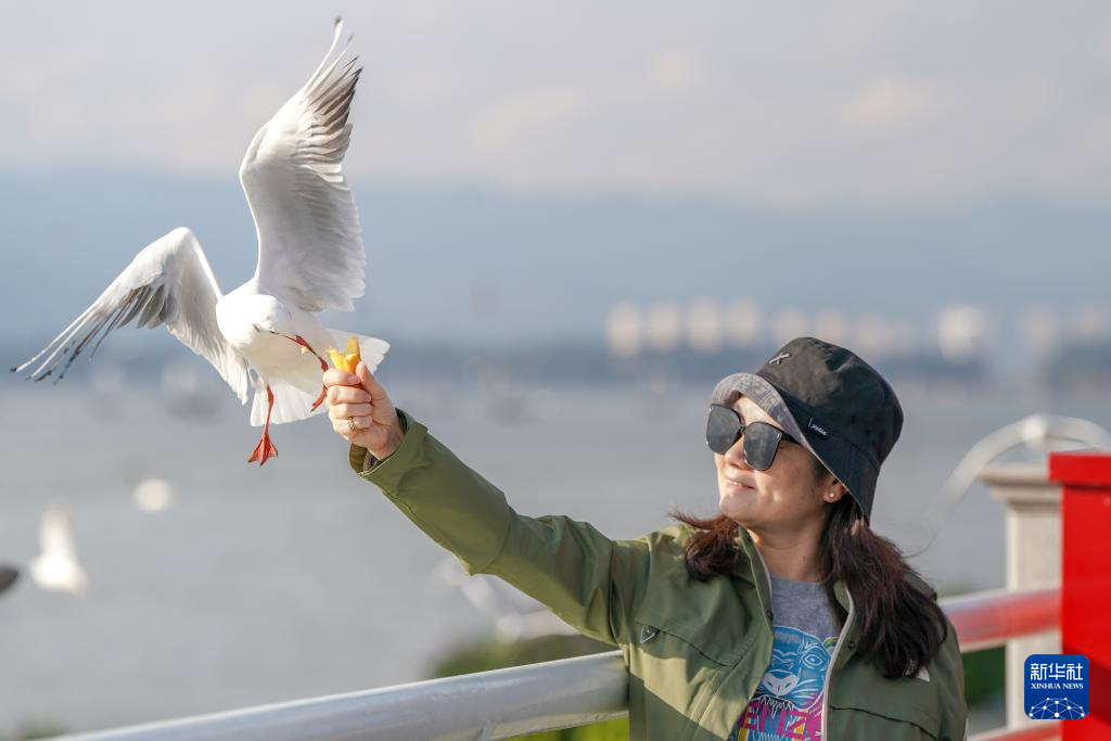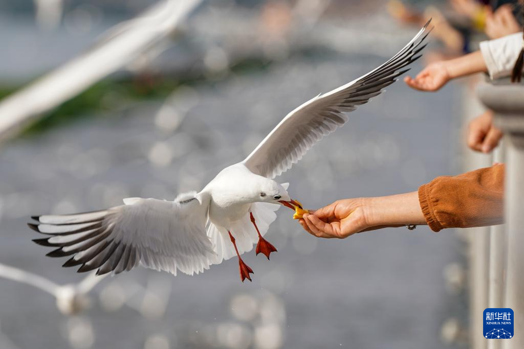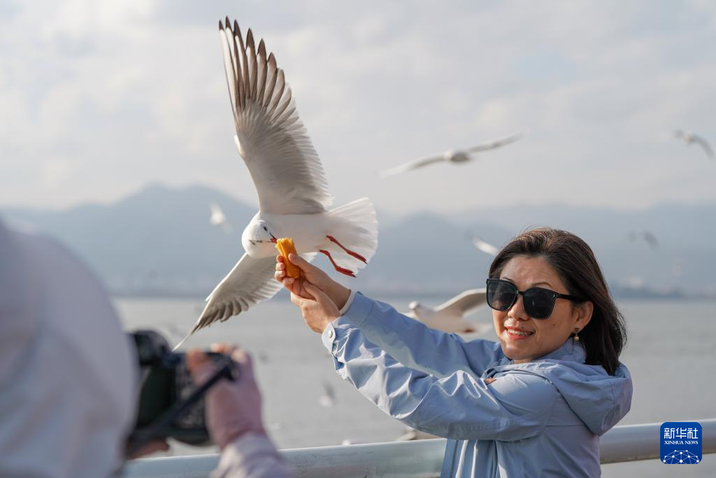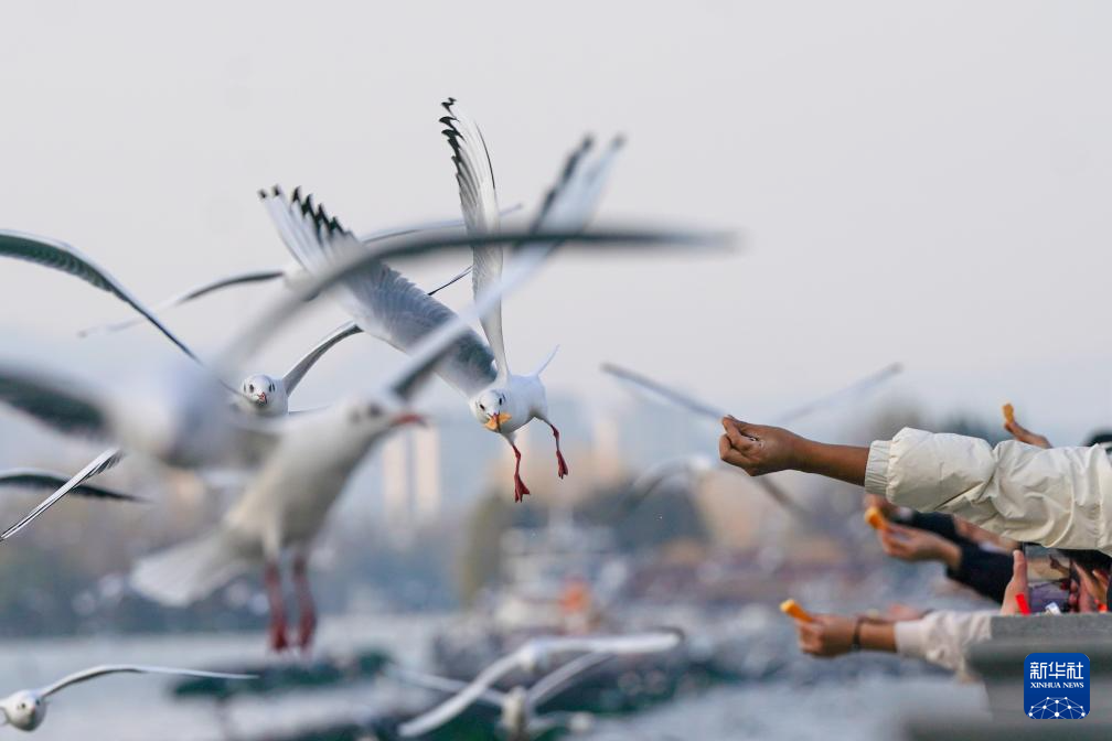 近日,红嘴鸥如往年一样从西伯利亚等地飞抵云南昆明,成为“春城”一道灵动的风景,吸引市民与游客前往观赏、互动。
