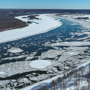 近日,黑龙江干流各江段陆续进入流冰期,江面上形成壮观的“跑冰排”景观。