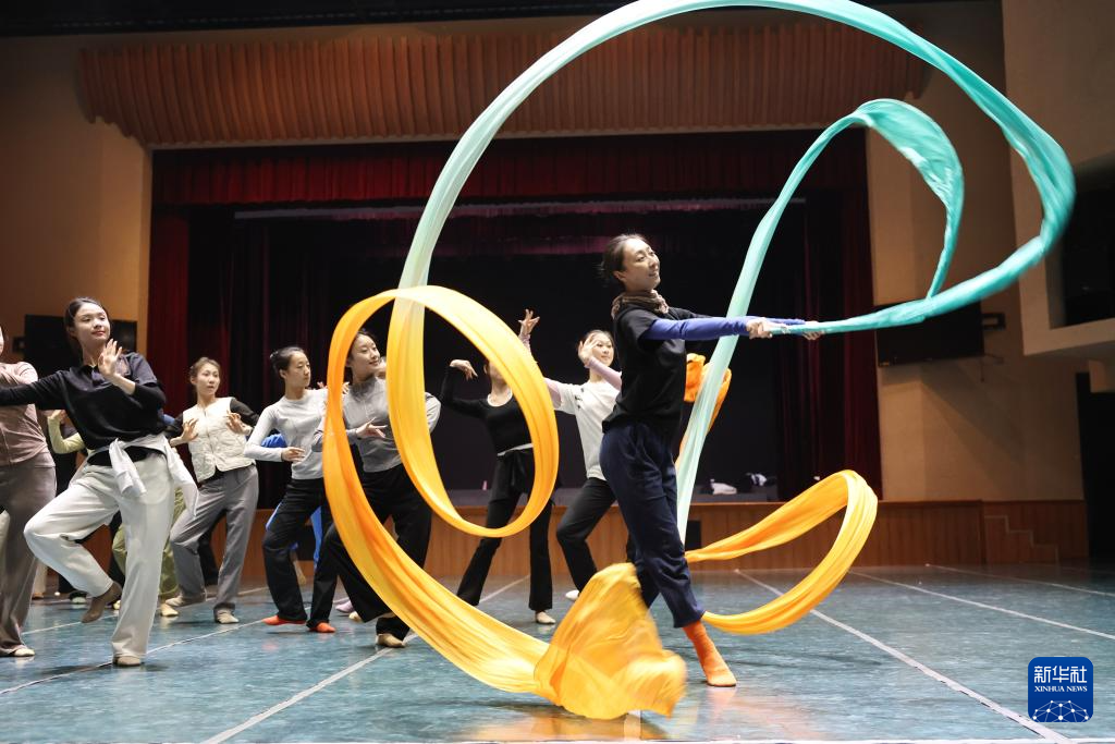 甘肃省歌舞剧院舞蹈演员在剧院排练厅排练新版《丝路花雨》(11月3日摄)。