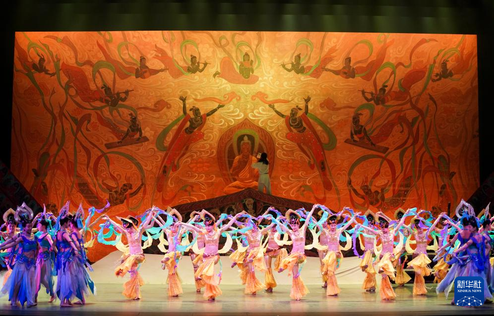 演员在敦煌大剧院表演2025年新版《丝路花雨》(2025年9月20日摄)。