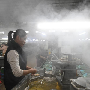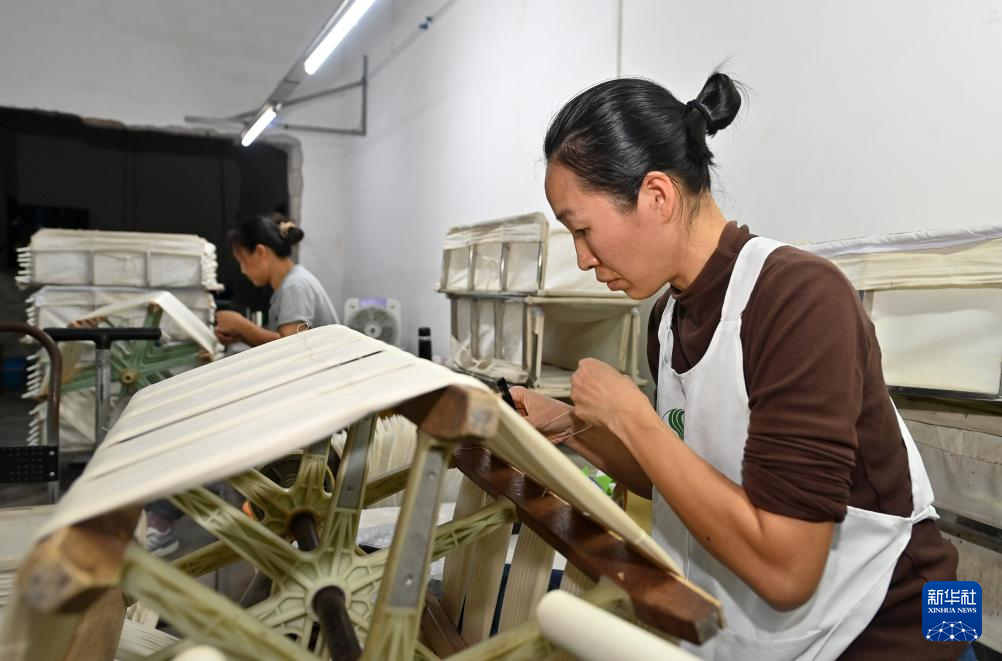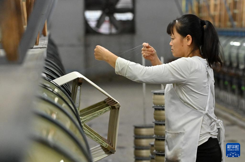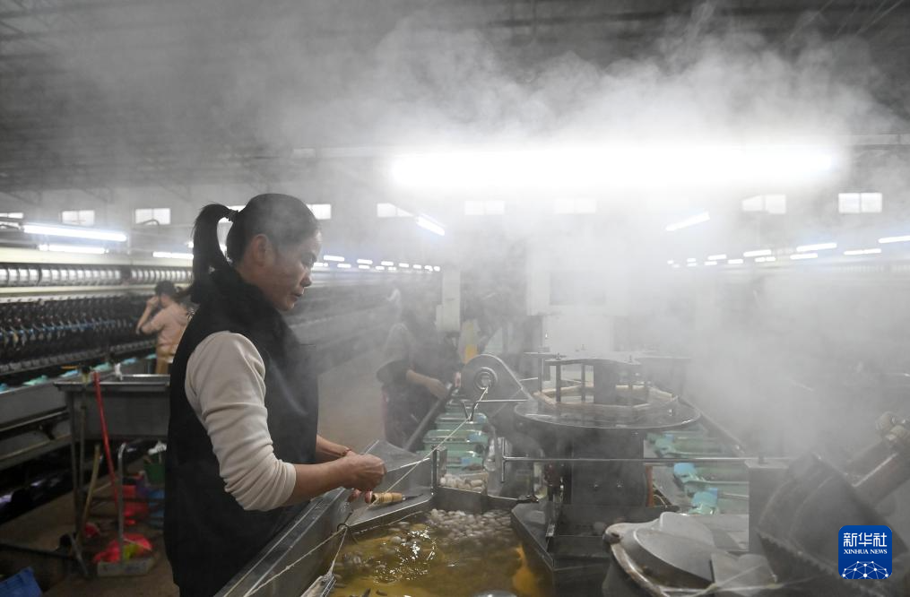 11月4日,工人在广西忻城县一家丝绸企业进行生产作业。
