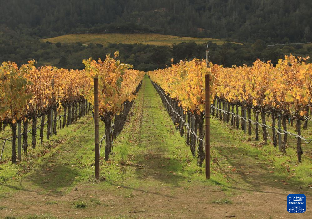这是11月4日在美国加州纳帕谷拍摄的葡萄园。