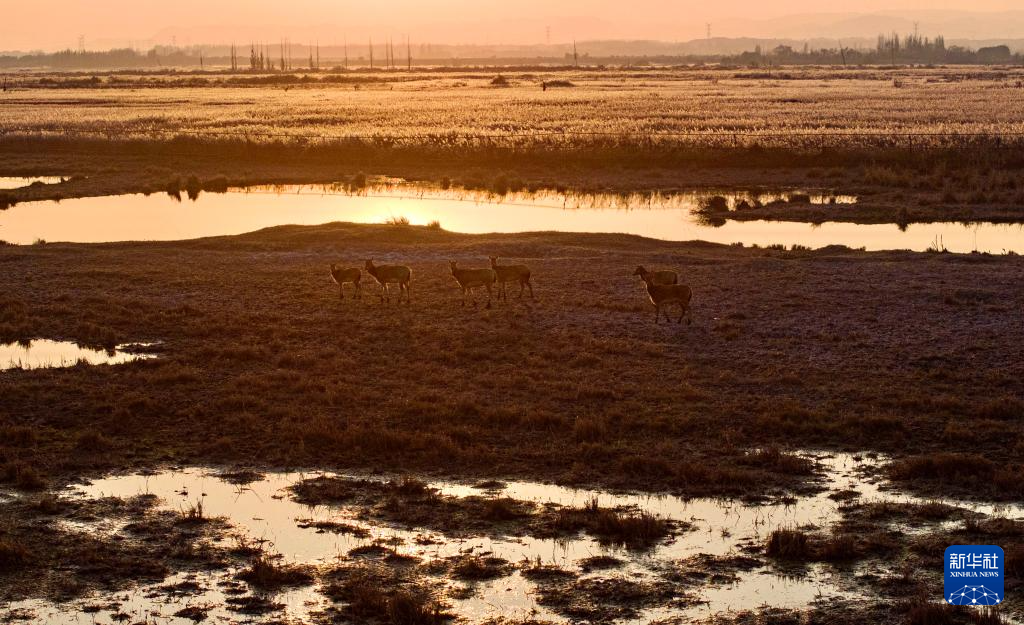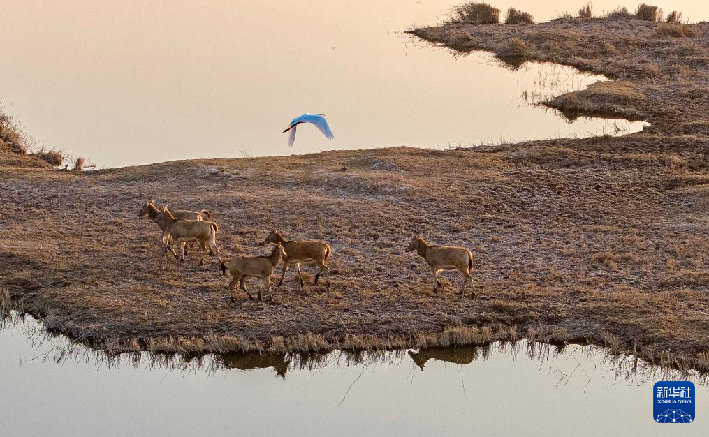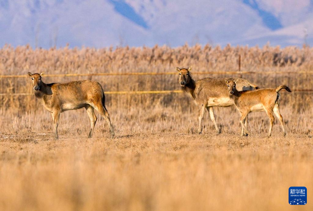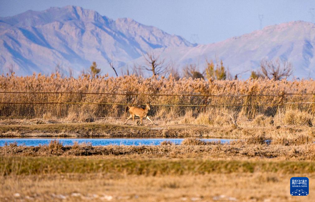 青铜峡库区湿地自然保护区总面积174.93平方公里,是宁夏最大的黄河滩涂类型湿地。2024年9月底,35头麋鹿落户青铜峡库区湿地自然保护区,经过一个月适应期后被野放在200余亩的围栏内。目前,随着6只麋鹿幼崽的诞生,当地麋鹿种群繁育工作迈入新阶段,放归区域从200余亩扩展至3000余亩,保护工作也从迁地扩繁转向野化放归,开启了黄河流域宁夏段生物多样性保护的新篇章。