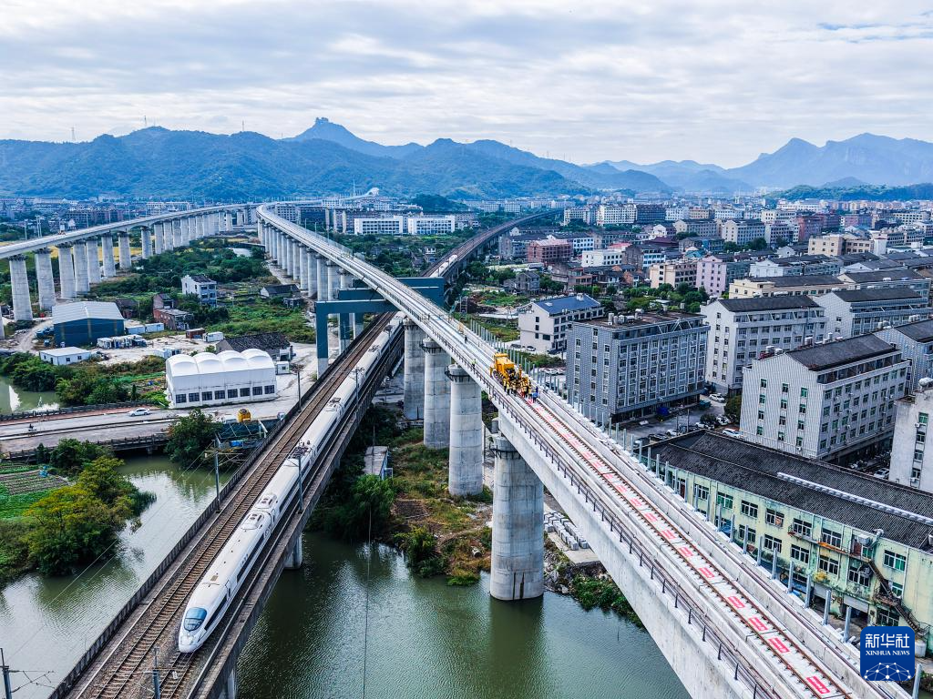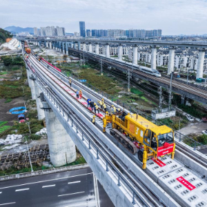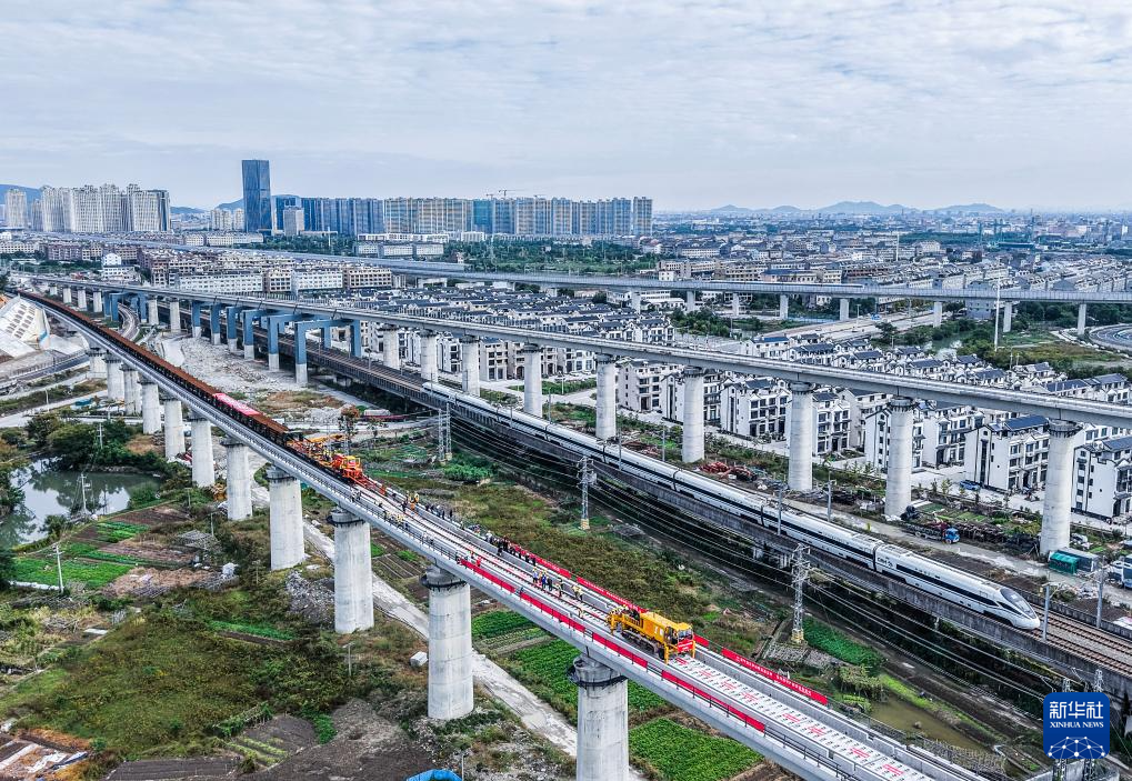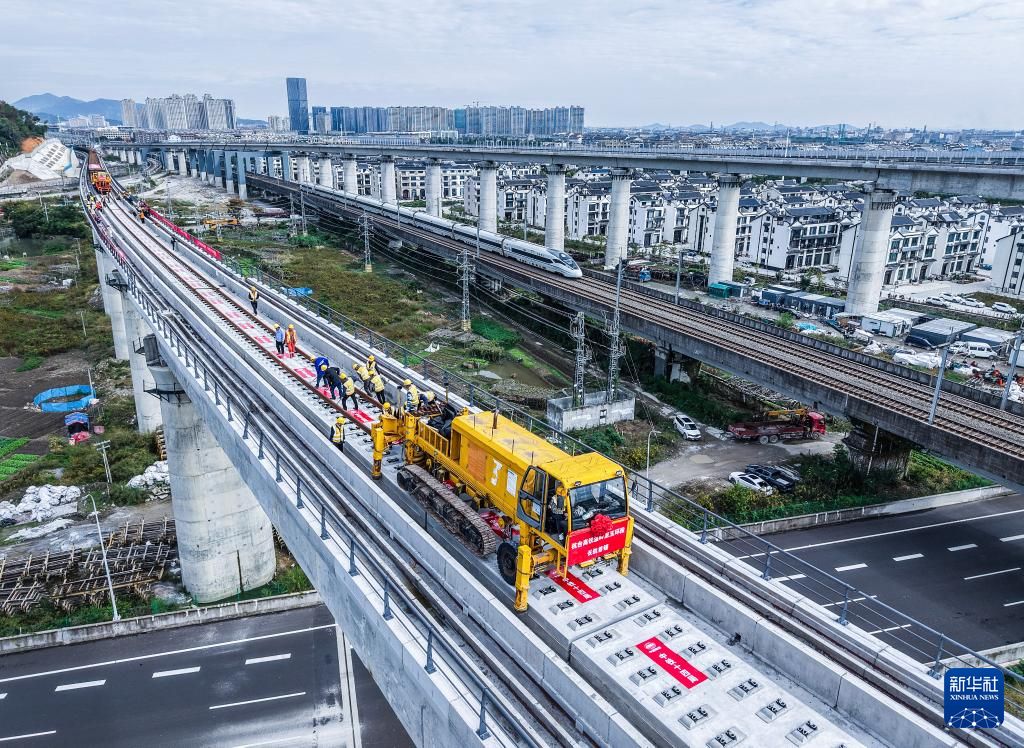 11月5日,杭台高铁温岭至玉环段正式启动铺轨作业,项目从土建施工阶段全面转入轨道工程建设阶段。