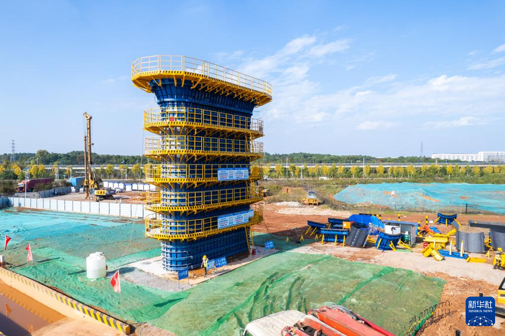 这是11月5日在长赣高铁机场高速特大桥施工现场拍摄的130号墩。
