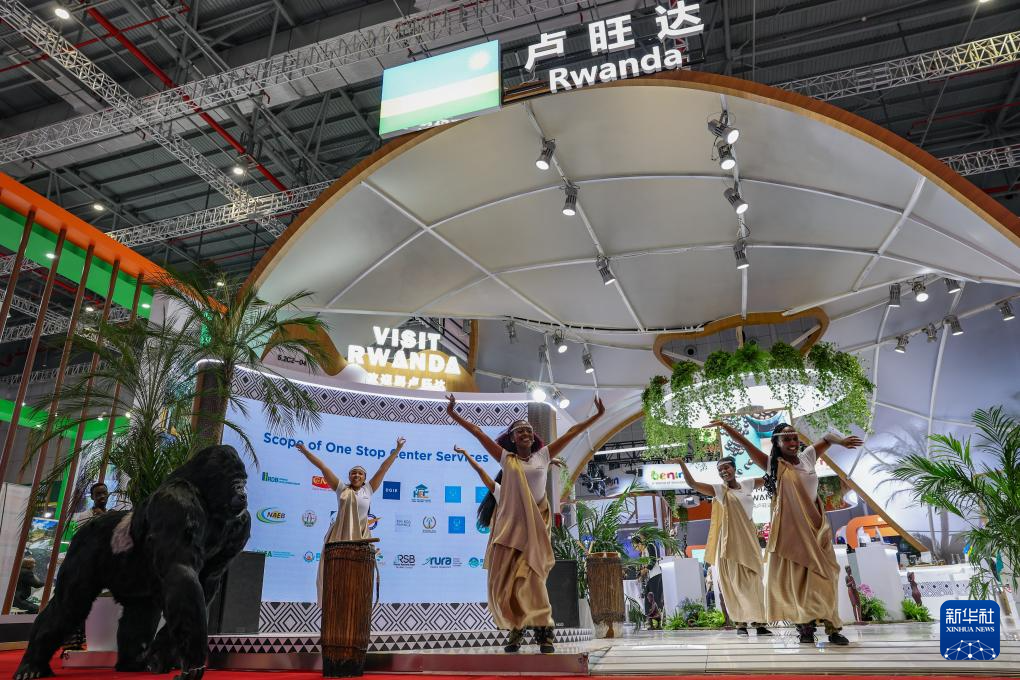 11月5日,演员在第八届进博会国家展卢旺达馆表演舞蹈。