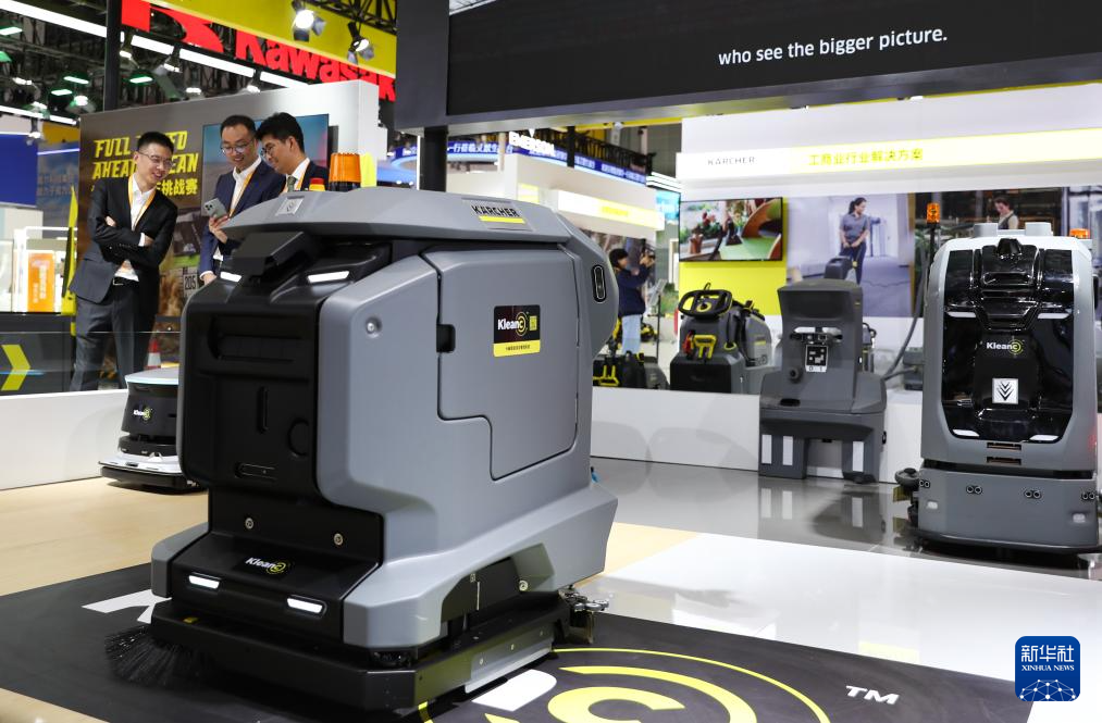 这是11月5日在第八届进博会技术装备展区德国卡赫展台拍摄的清洁设备展品。