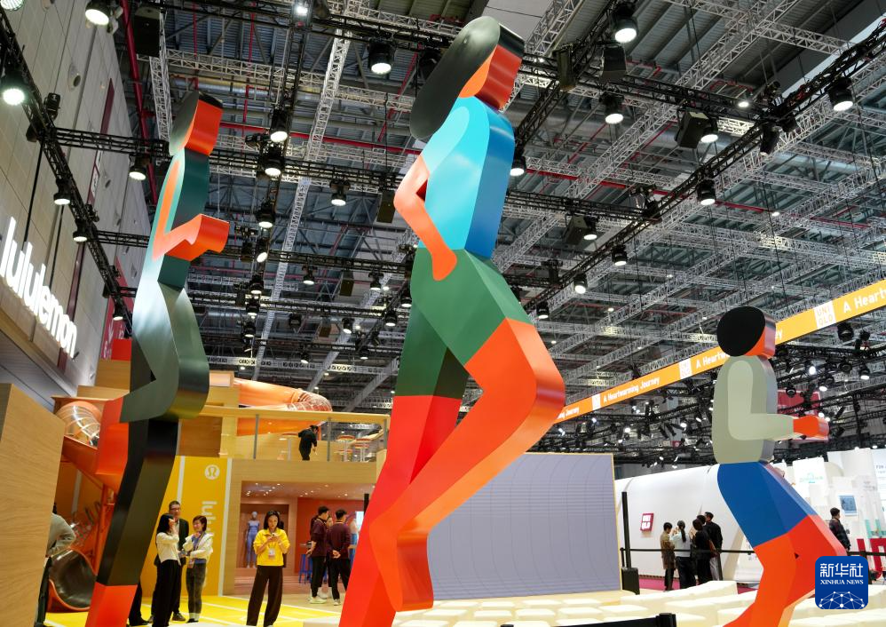 这是11月5日在第八届进博会消费品展区拍摄的露露乐蒙(lululemon)展台。