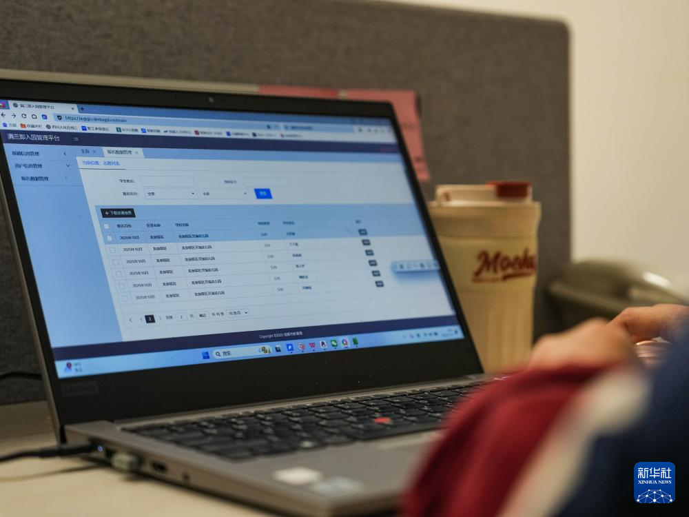 11月4日,四川省成都市龙泉驿区灵瑞幼儿园老师在“满三入园管理平台”查看当月新生报名情况。