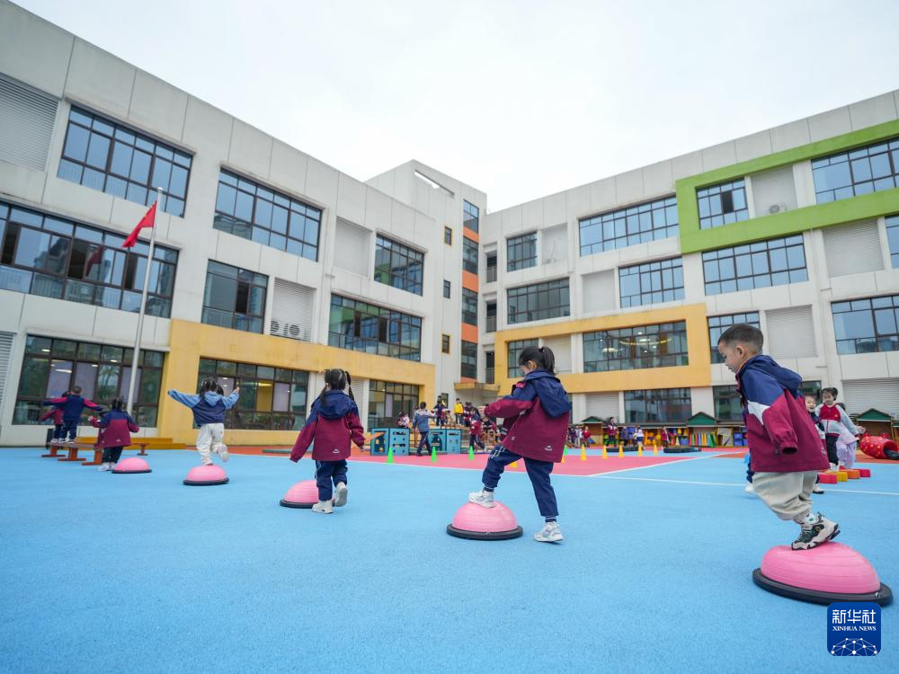 11月4日,小朋友在四川省成都市龙泉驿区灵瑞幼儿园户外活动。