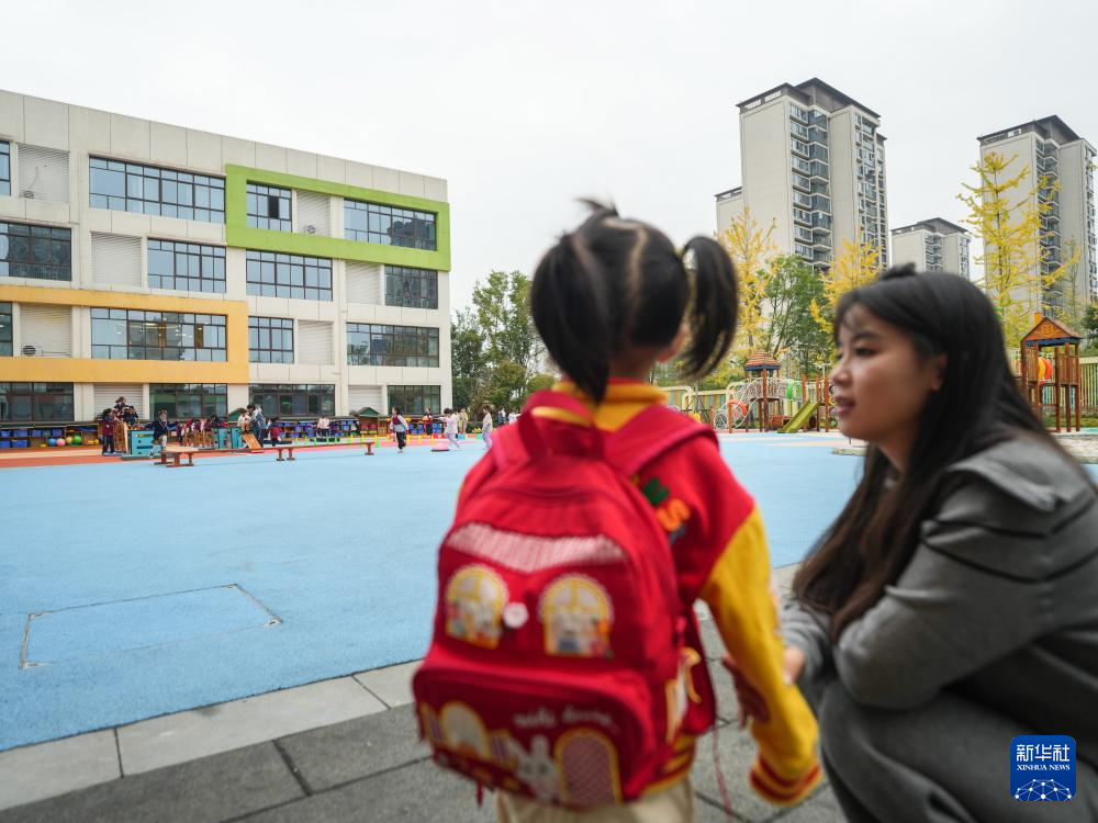 11月4日,在四川省成都市龙泉驿区灵瑞幼儿园,家长带着新入园的小朋友了解幼儿园生活。