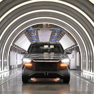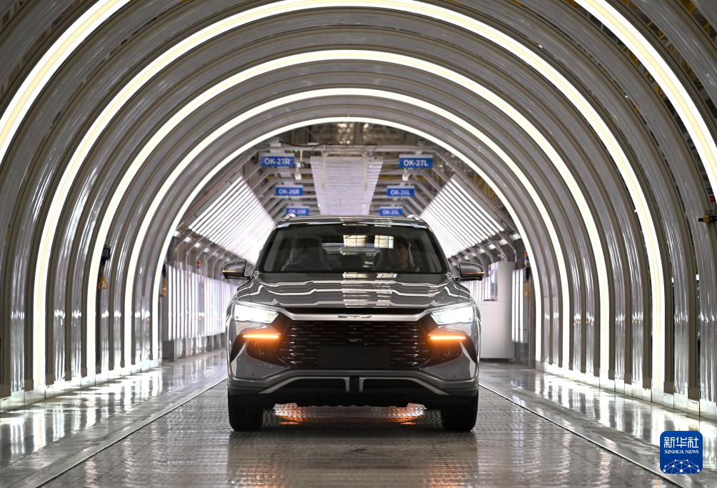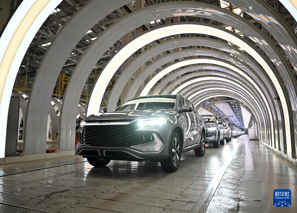11月3日在郑州航空港区比亚迪总装工厂拍摄的新能源汽车“宋Pro”生产线。
