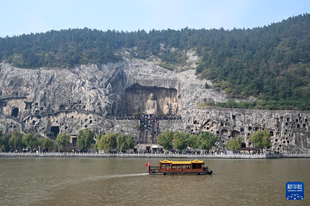 11月4日,游客在河南省洛阳市龙门石窟景区游玩。