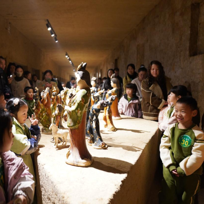 11月5日,游客在河南省洛阳市孟津区南石山村唐三彩文化园参观游览。