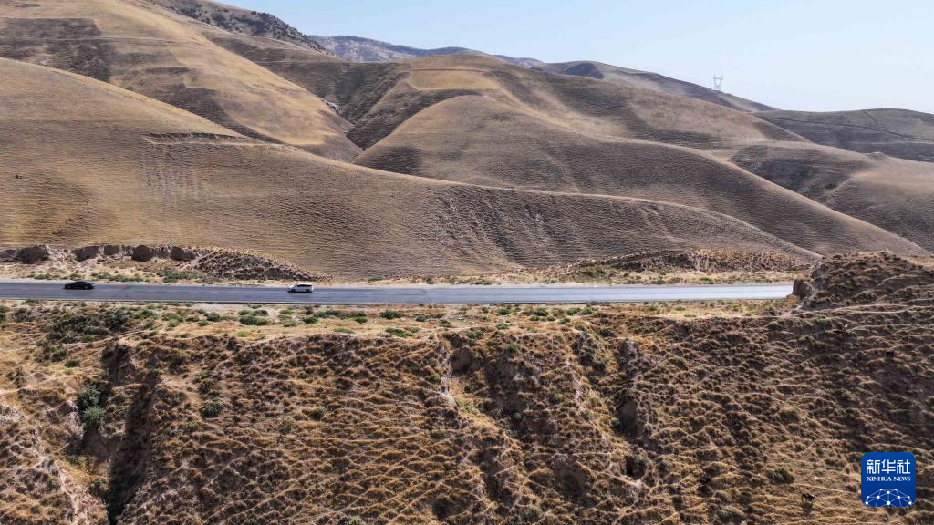 这是9月10日在塔吉克斯坦哈特隆州拍摄的中塔公路一期路段(无人机照片)。