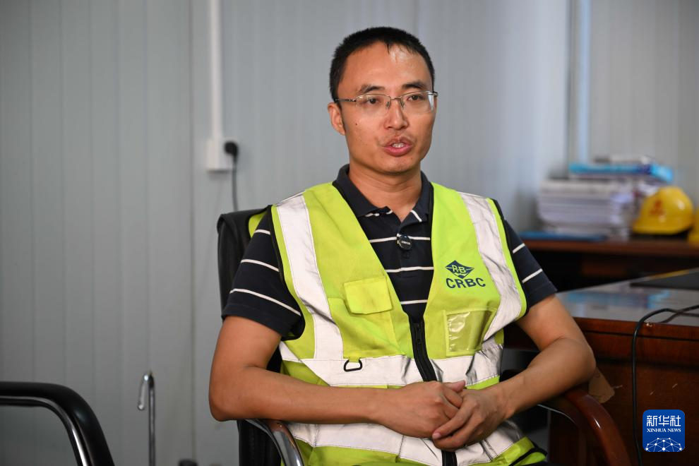 9月11日,在塔吉克斯坦卡拉依洪姆村附近的中塔公路二期项目主营地,姜树林接受新华社记者采访。