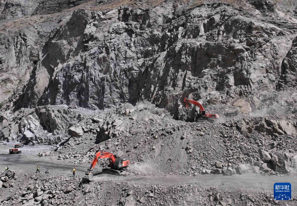 这是9月11日在塔吉克斯坦卡拉依洪姆村附近拍摄的中塔公路二期工程施工现场。