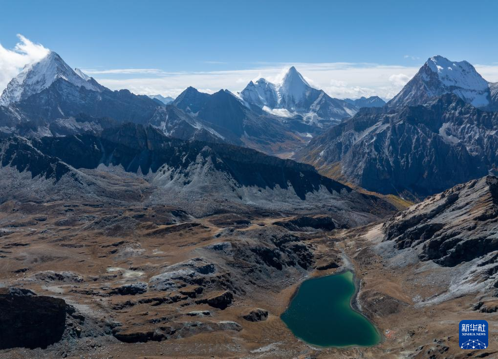 夏诺多吉雪山下的角峰冰川地貌(10月28日摄,无人机照片)。