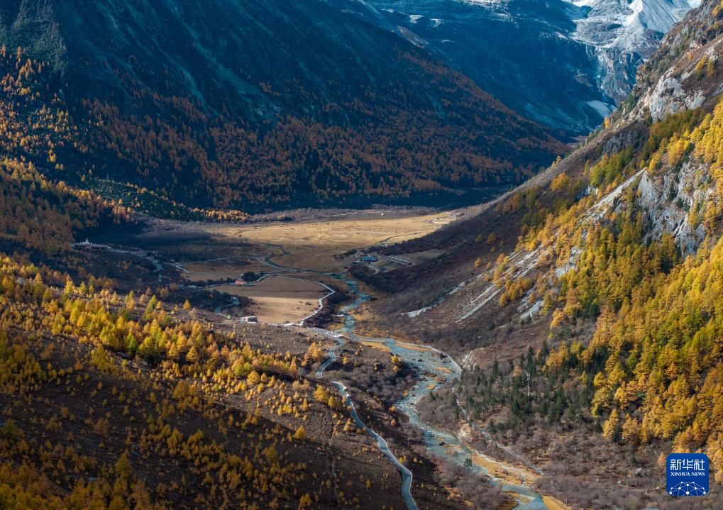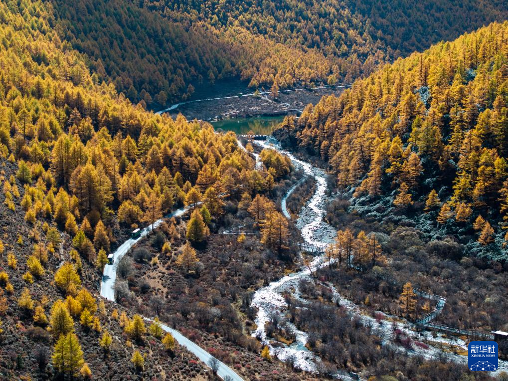 稻城亚丁景区层林尽染(10月28日摄,无人机照片)。