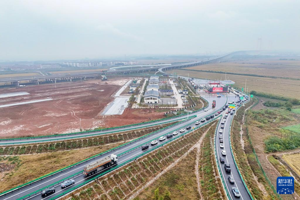 11月6日,车辆排队准备通过铜陵长江三桥普济圩收费站(无人机照片)。