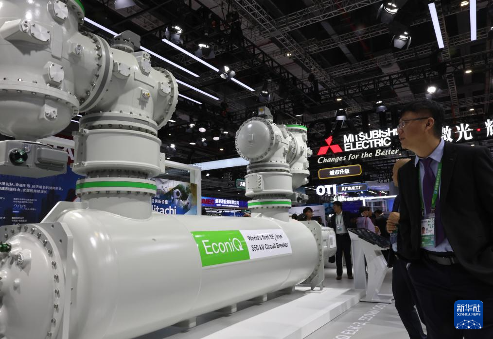 11月6日,参观者在日立公司一款封闭式气体绝缘开关设备展品旁驻足观看,这是该型号产品的中国首展。