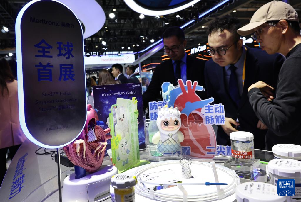 11月6日,参观者在美敦力公司一款超硬导丝产品展台前驻足观看,这是该产品的全球首展。
