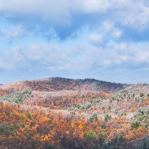 11月6日在黑龙江省伊春市拍摄的雪后五花山风光(无人机照片)。