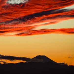 这是11月6日傍晚在日本东京拍摄的火烧云与富士山(手机照片)。