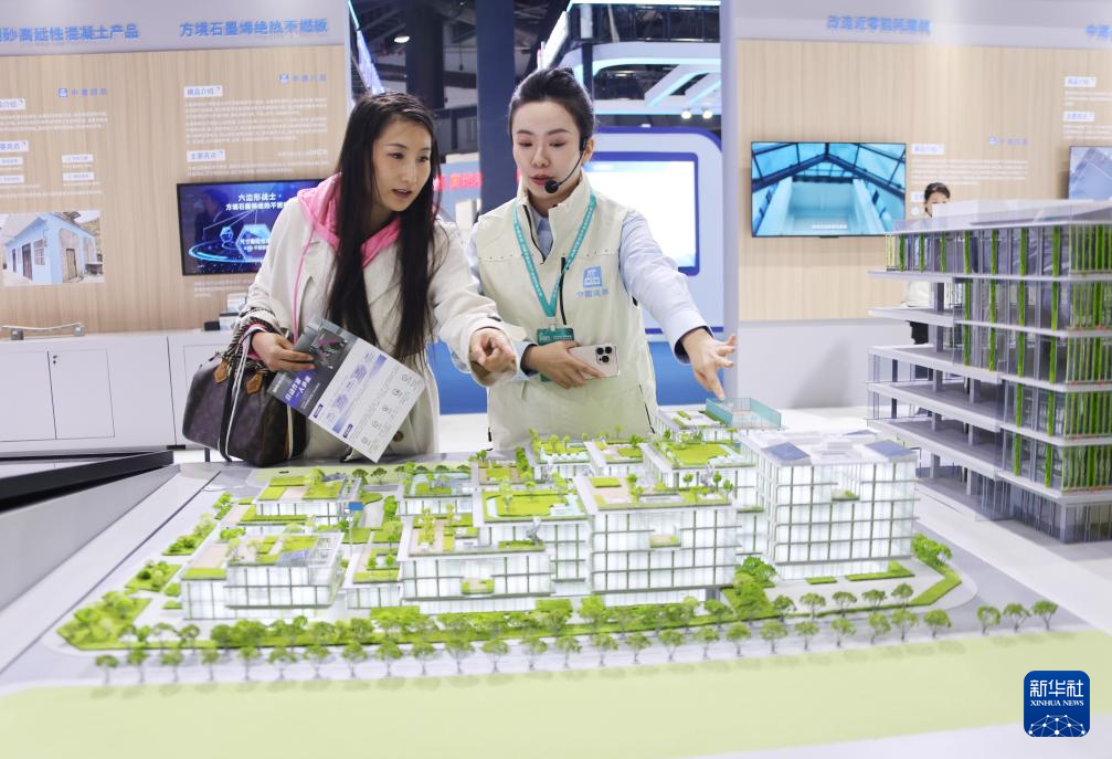 11月6日,参观者在住博会上了解绿色低碳好房子的展出内容。