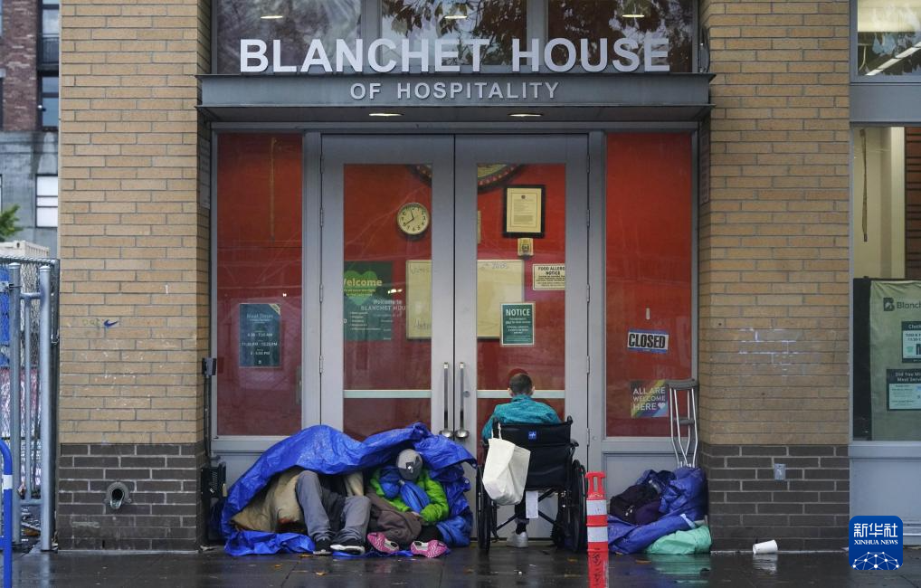11月5日清晨,在美国俄勒冈州波特兰的深秋寒意中,无家可归者蜷缩在街边角落里。
