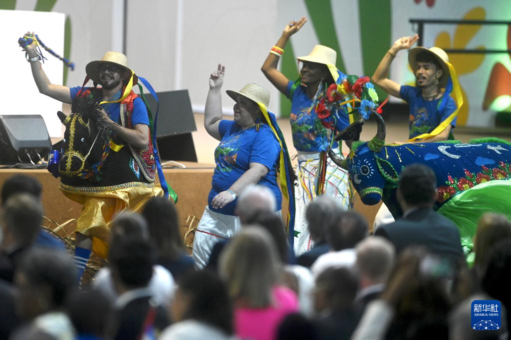 11月6日,艺术家在巴西北部帕拉州贝伦举行的贝伦气候峰会上表演舞蹈。