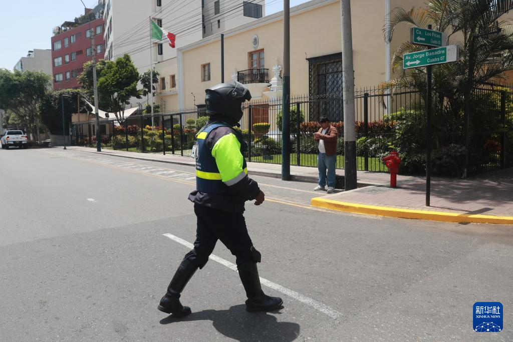 11月4日,在秘鲁首都利马,一名警察从墨西哥驻秘鲁大使馆外走过。