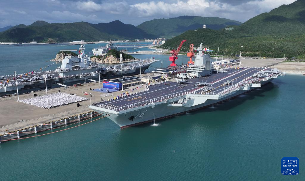 11月5日,我国第一艘电磁弹射型航空母舰福建舰入列授旗仪式在海南三亚某军港举行。