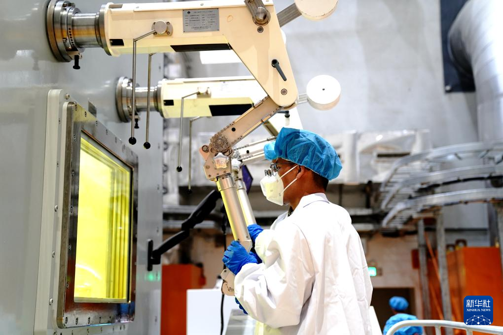 记者11月1日从中国科学院获悉,由中国科学院上海应用物理研究所牵头建成的2兆瓦液态燃料钍基熔盐实验堆近日首次实现钍铀核燃料转换,在国际上首次获取钍入熔盐堆运行后实验数据,成为目前全球唯一运行并实现钍燃料入堆的熔盐堆,初步证明了熔盐堆核能系统利用钍资源的技术可行性。这是10月24日,在中国科学院上海应用物理研究所武威园区,科研人员在实验堆加料-取样热室工作。