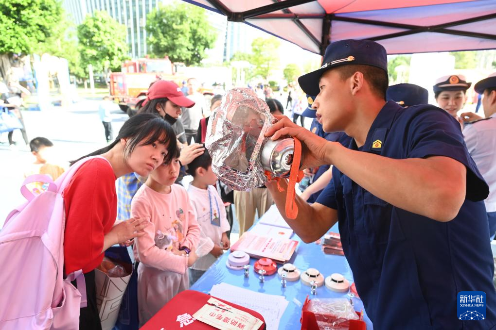 11月8日,消防员向市民介绍家庭常备消防器材的使用方法。