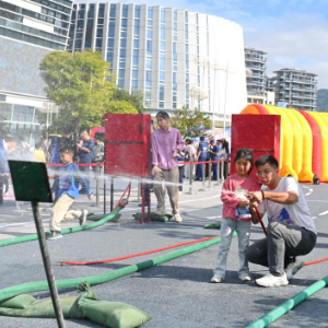 11月8日,家长带着孩子参加消防趣味运动会比赛。