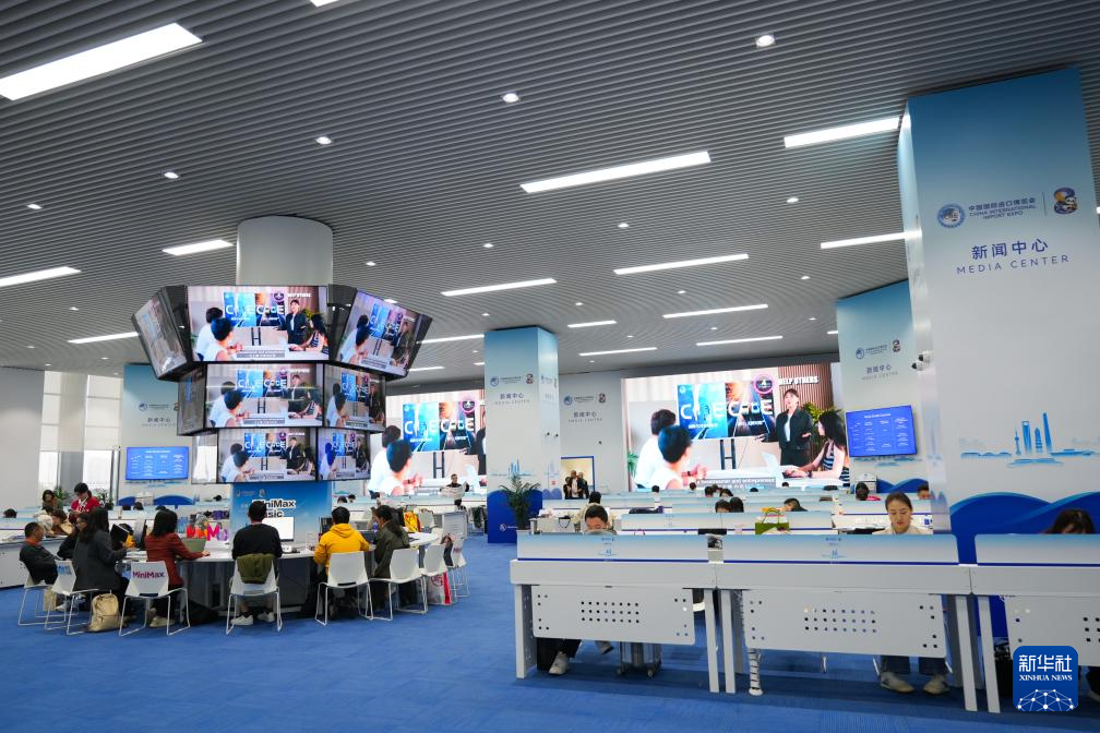 11月8日是第26个中国记者节。在第八届中国国际进口博览会现场,媒体记者在展区采访。多项活动同步在进博会新闻中心开展,为媒体记者庆祝属于他们的节日。