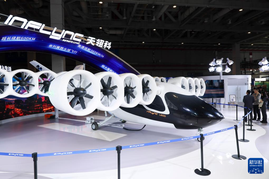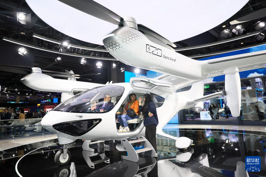 11月5日在第八届进博会汽车及智慧出行展区拍摄的时的科技E20 eVTOL(电动垂直起降飞行器)。