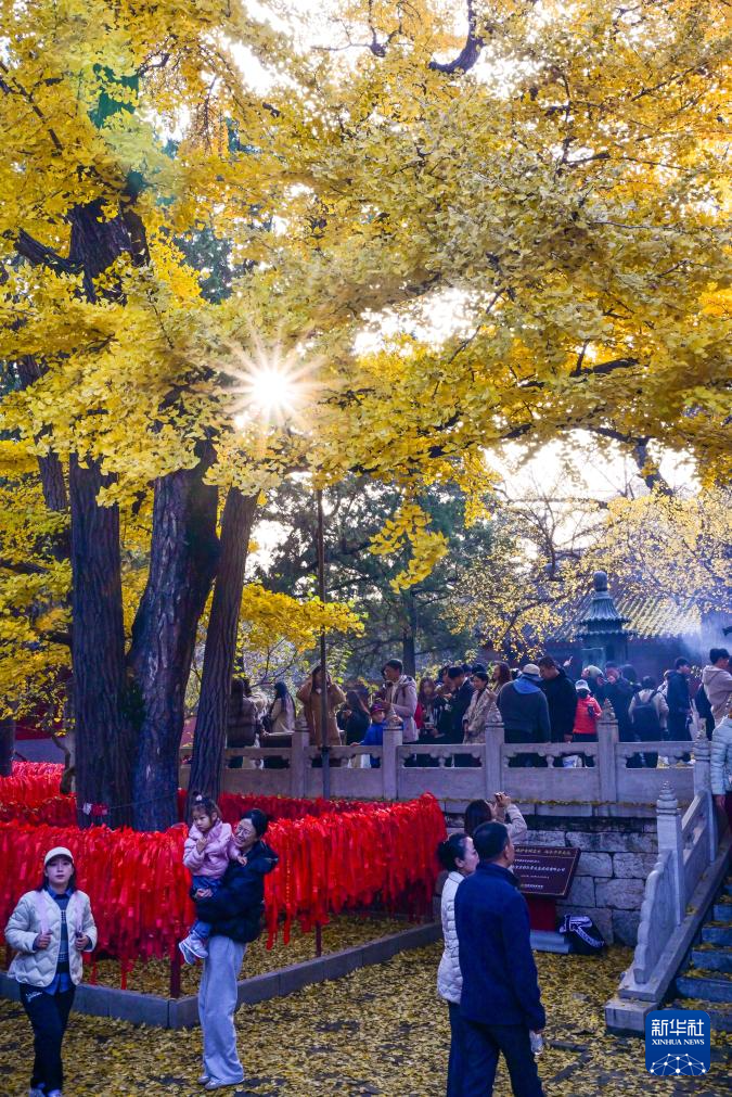 初冬时节,北京怀柔的红螺寺、雁栖湖等地,层林尽染、色彩斑斓,引得不少游客前来赏景游玩。