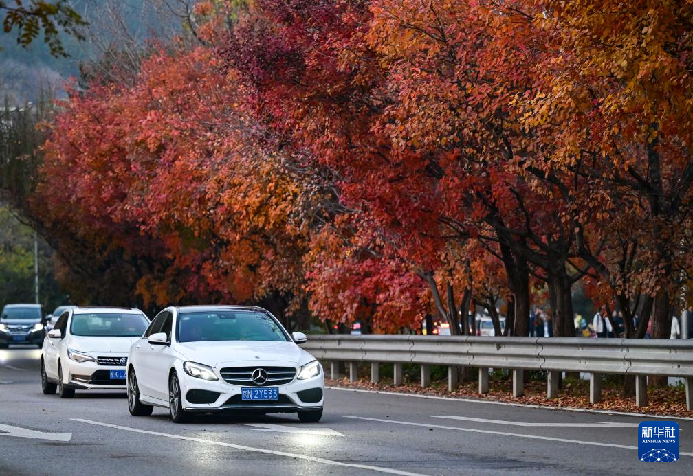 11月8日,车辆行驶在北京红螺寺附近的一条公路上。