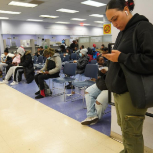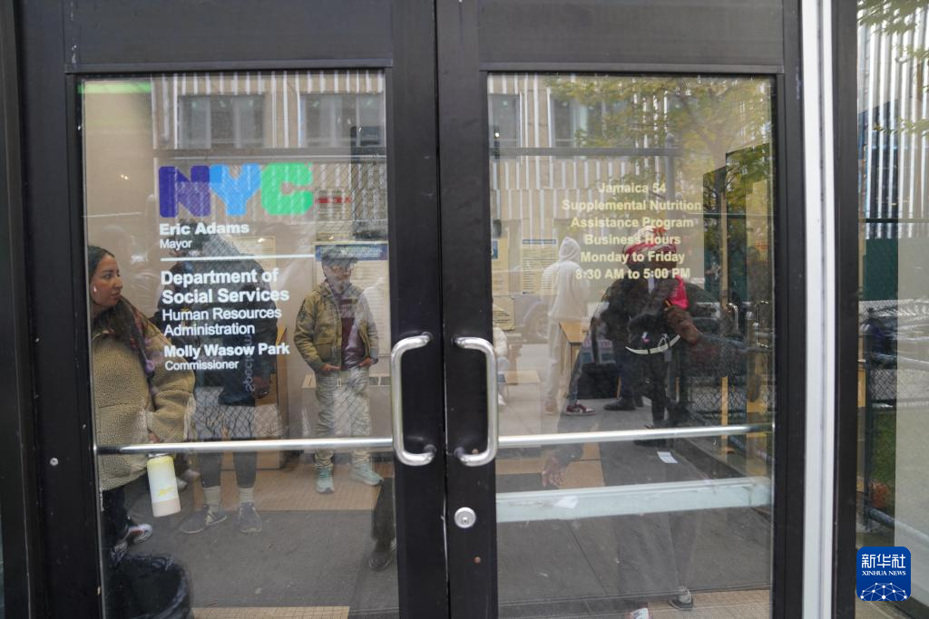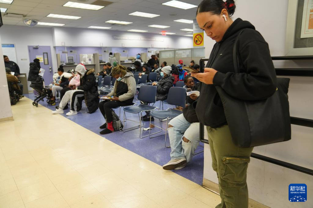 11月7日,人们在美国纽约市社会服务局就业中心等待。