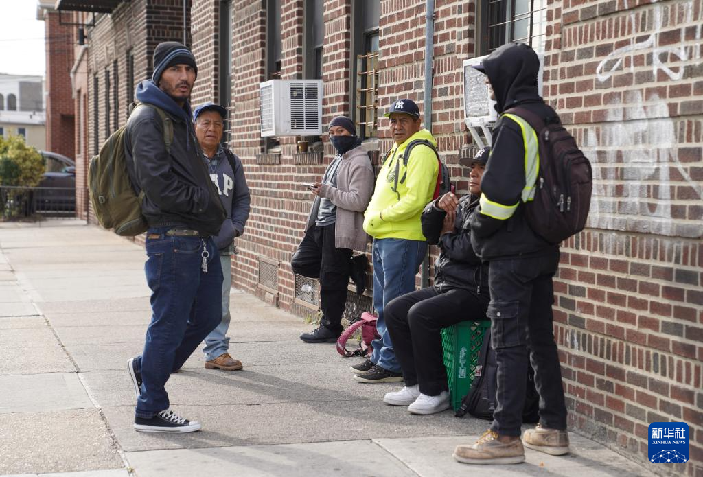 11月7日,人们在美国纽约一处街头零工市场等待雇主。