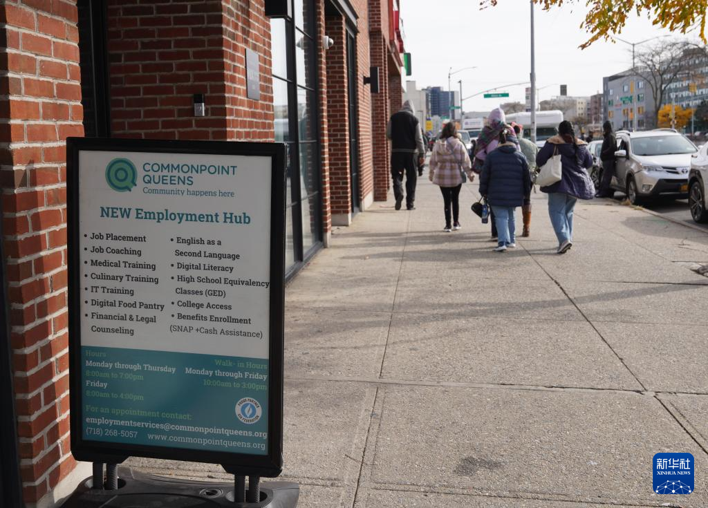 11月7日,人们走过美国纽约一处社区就业服务站。