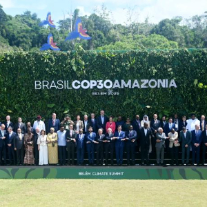 11月7日,与会嘉宾在巴西贝伦气候峰会上合影。