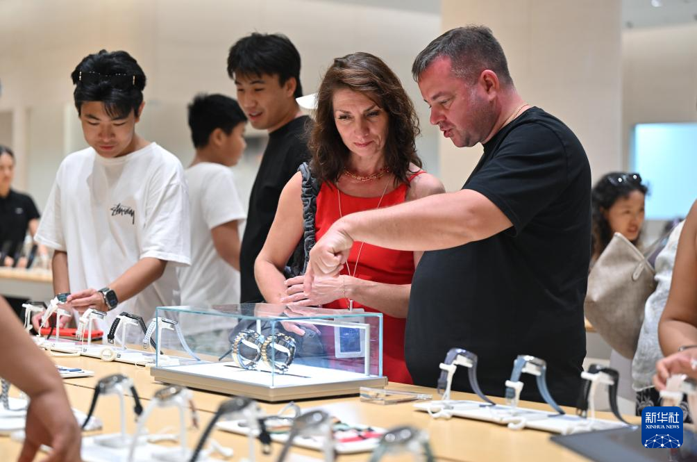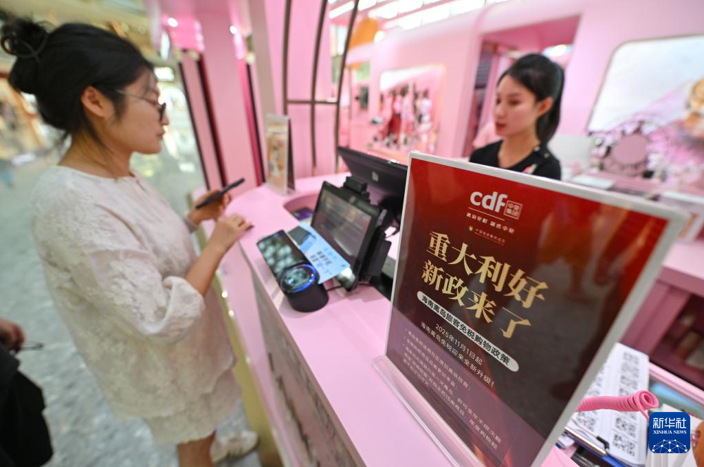 11月9日,外国顾客在三亚国际免税城选购商品。新政将适用人群扩至离境旅客。